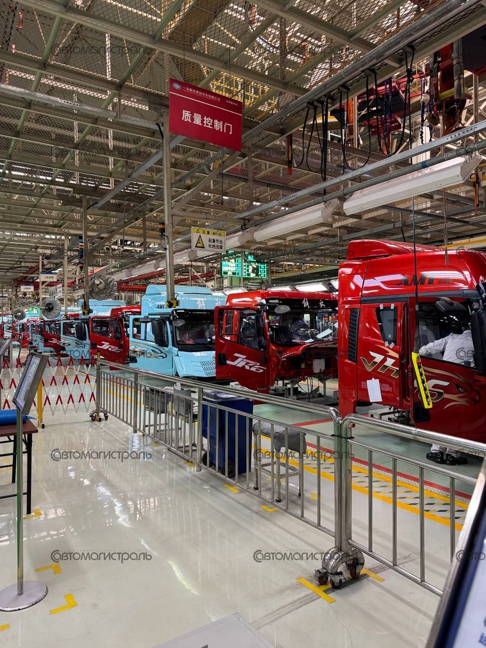 Некоторые этапы производства грузовиков FAW на заводе в Циндао: