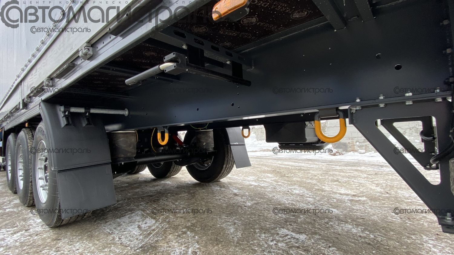 - Оси: 3 оси SAF Intradisc CD, дисковые тормоза диаметром 430 мм, пневматическая подвеска. На первой оси устройство автоматического подъема.