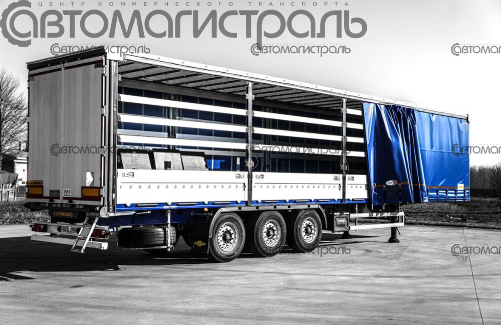 - Борта: Боковая раздвижная штора 900 гр/м2 с увеличенным количеством роликов для легкого расшторивания. Механизм натяжения и ослабления тента, управляемый одной рукой. По 3 сдвижные легкосъемные стойки с каждой стороны. Борта высотой 600 мм, 4х2 шт, откидные, съемные. Алюминиевая обрешетка в 3 ряда.
