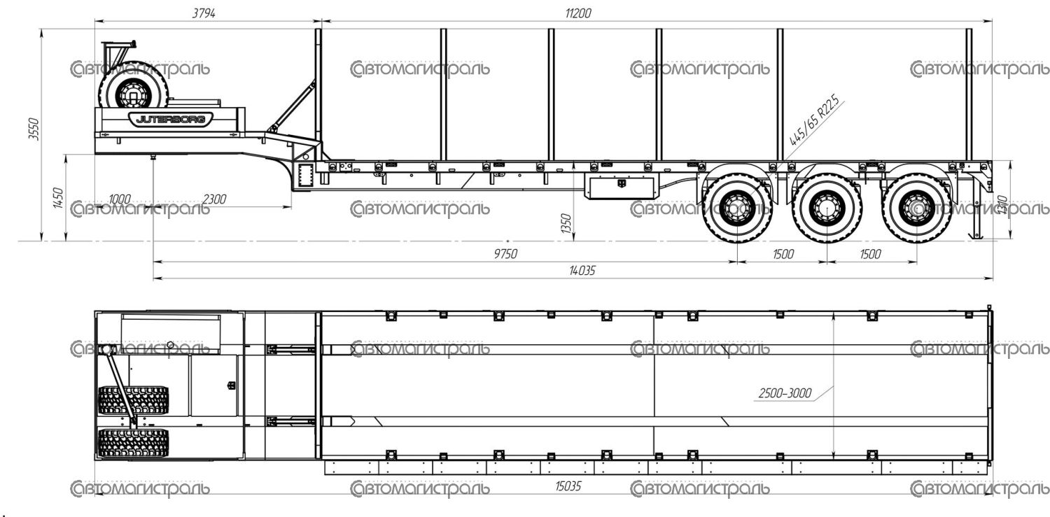 Технические характеристики высокорамного трала 45 тонн JTB-45